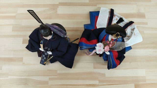 男雛・女雛ともに『 藍染 』の生地を使用して作られ素敵なお人形に仕上がりました。
