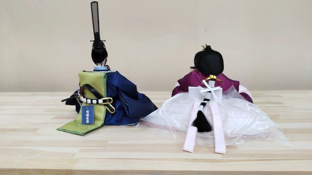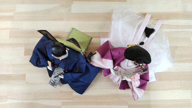 男雛・女雛ともにブライダルドレス生地を使用して作られ素敵なお人形に仕上がりました。
