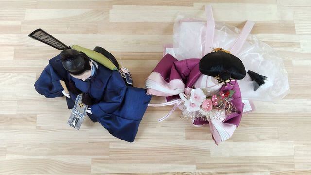 男雛・女雛ともにブライダルドレス生地を使用して作られ素敵なお人形に仕上がりました。