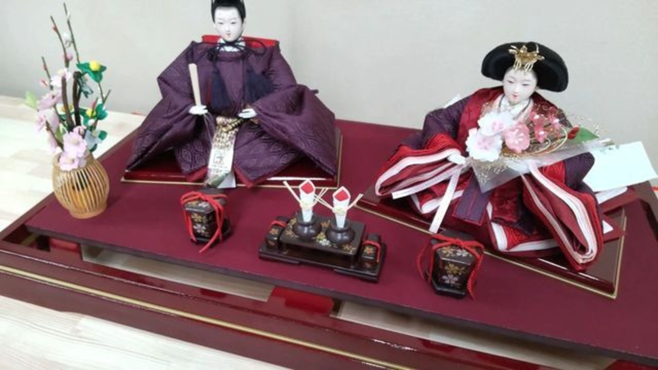 男雛・女雛ともにブライダルドレス生地を使用して作られ素敵なお人形に仕上がりました。