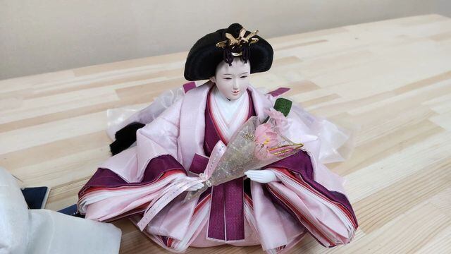 女雛にはブーケを持たせ優しさを一層引き立てました。