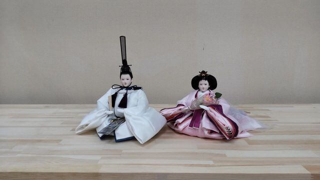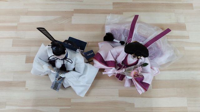 男雛・女雛ともにブライダルドレス生地を使用して作られ素敵なお人形に仕上がりました。