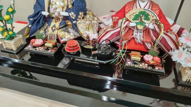 男雛・女雛ともに高級刺繍生地を使用して作られ素敵なお人形に仕上がりました。