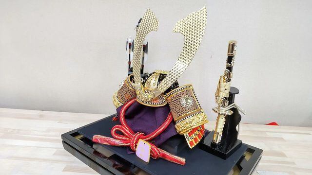 背景には松柄加賀蒔絵に切替金箔。高級感溢れ、勇ましさを引き立たせています。