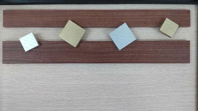 背景には洋風でモダンな木目調に金と銀の飾りを取り付けました。勇ましさと優しさ溢れています。