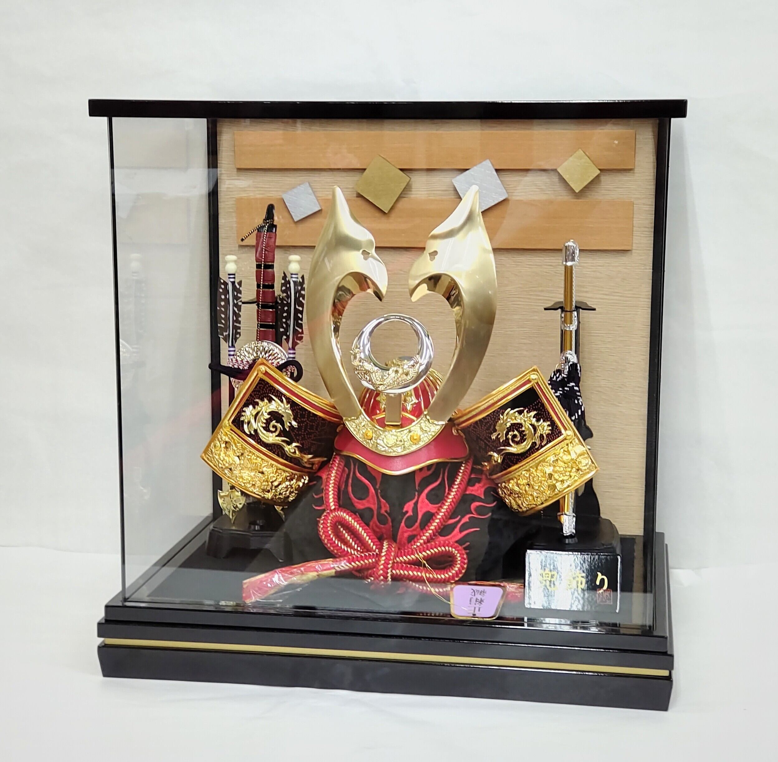 パノラマガラスケース飾りはガラスの透明度が高くスッキリして兜が綺麗にうつります。