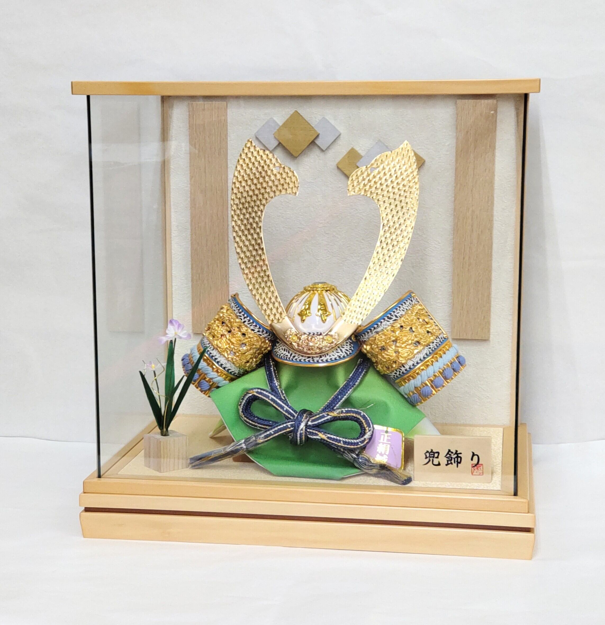 パノラマガラスケース飾りはガラスの透明度が高くスッキリして兜が綺麗にうつります。