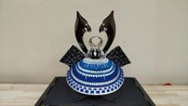 中央のリングに誕生石(スワロフスキー )が入れられるお子様オリジナルの兜ケース飾りです。