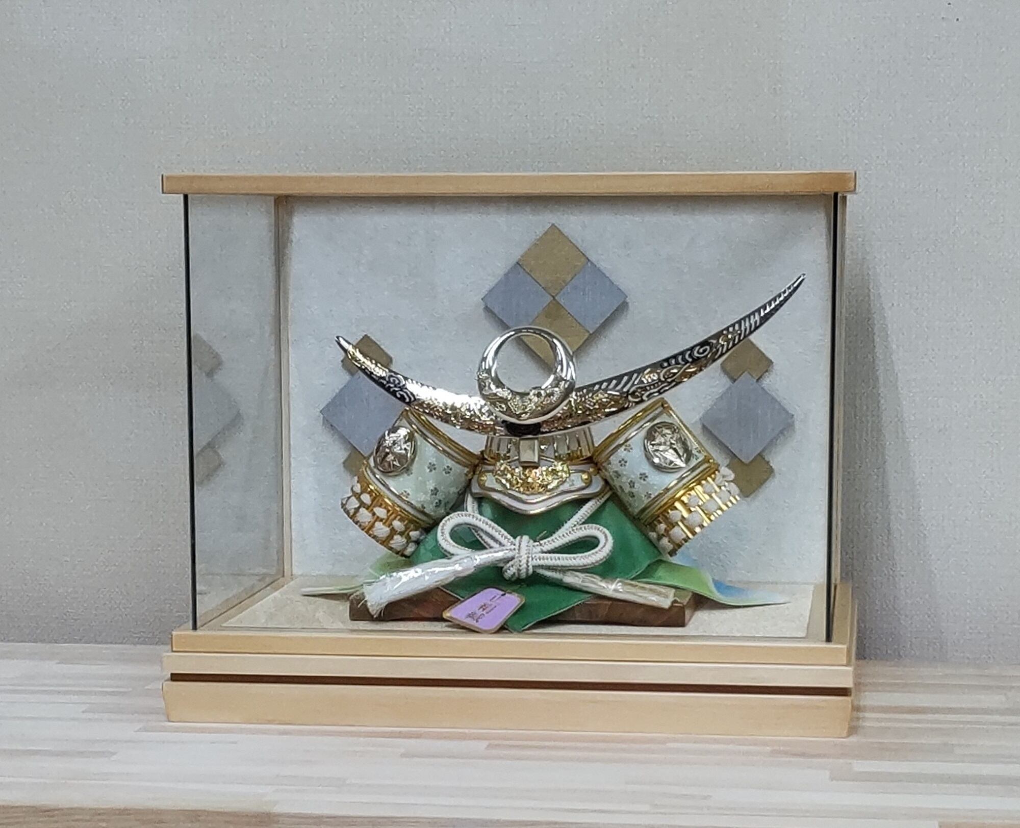 パノラマガラスケース飾りはガラスの透明度が高くスッキリして兜が綺麗にうつります。