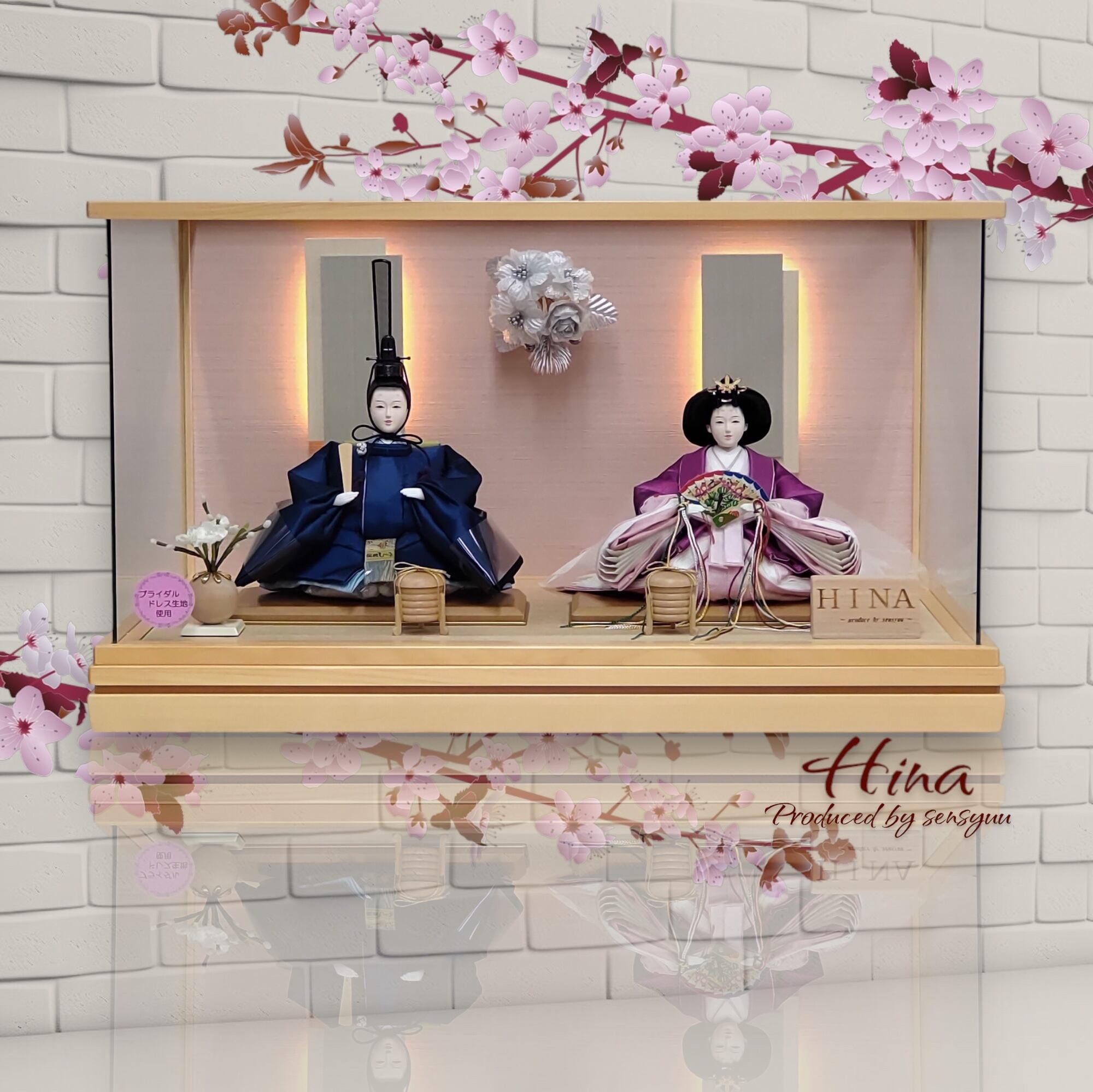 そのお内裏さまが飾られているのは間接照明の明かりがモダンで暖かみある木製ガラスケースで、その美さと、華やかさがありながらも品格あるケース飾りをご堪能ください。